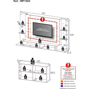 *Devido as variações de tamanho dos televisores no mercado, sugerimos que verifique as medidas da sua TV e compare com o painel antes de efetuar a compra.