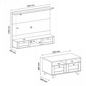Crie uma sala de estar completa e harmoniosa com este elegante conjunto Artely! Com peças sofisticadas e funcionais, este conjunto oferece o equilíbrio perfeito entre organização, beleza e praticidade. Ideal para quem busca um ambiente acolhedor e moderno, ele transforma sua sala em um espaço mais agradável e convidativo. As peças combinam entre si com design, cores e acabamentos coordenados, criando uma composição visualmente equilibrada e charmosa. O acabamento é resistente e agradável ao toque, garantindo durabilidade e elegância. Feito com materiais de alta qualidade, este conjunto é a escolha ideal para quem deseja unir estilo, conforto e funcionalidade em um único ambiente. 1 unidade PAINEL ARTELY TRAMA - CARVALHO (4611)1 unidade APARADOR ARTELY TRAMA - CARVALHO (4637)1 unidade MESA CENTRO ARTELY TRAMA - CARVALHO (4639)1 unidade MESA DE APOIO TRAMA - CARVALHO (4638)