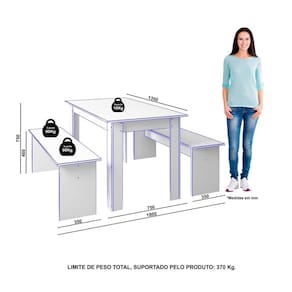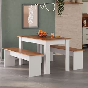 O Conjunto Sala de Jantar Primor é um produto especial para pessoas com muito estilos como você. Contém dois bancos que proporcionam charme diferenciado ao ambiente. Fácil para ser remanejado de acordo com suas necessidades é versátil pode ser utilizado em diversas situações, como reunir os amigos para uma descontraída noite de jogos, mesa de estudos, ou para fazer aquela refeição maravilhosa com quem você ama. Medida da Mesa (A x L x P): 75,2x135x75 Peso da Mesa: 17,5 kg Mesa suporta até: 10 kg Acabamento da Cadeira/Banco: Pintura UV Acabamento da Mesa: Pintura UV Acompanha Manual de Instalação: Sim Altura do Conjunto: 75,2 cm Ambiente Principal: Sala de Jantar Cadeira/Banco estofada: Não Cadeira/Banco suporta até: 90 kg Complexidade da Montagem: Média: pode ser montado por mais de uma pessoa e/ou necessite de maior conhecimento para montagem Cor: Branco Cor da Base: Branco Cor do Produto: Branco Cor do Tampo: Marrom Cor Secundária: Marrom De Canto (Canto Alemão): Não Design da Base: 4 Pés Escala de Brilho: Brilhante Espessura do Tampo: 15 mm Estrutura do Assento: MDP Formato do Tampo: Retangular Itens Inclusos: 1 Mesa, 2 Bancos, Kit Ferragens e Manual de Montagem Linha ou Coleção: Primor Manual de Montagem e Instalação: https://product-hub-prd.madeiramadeira.com.br/909032/documents/3e286731-9ce6-4a84-825e-4538a52c372a9b19bbeddff796366909680000.pdf Material da Base da Mesa: MDP Material da Estrutura da Cadeira: MDF/MDP Material do Tampo: MDP Material Principal: MDP Material Principal das Cadeiras/Bancos: MDP Medida da Cadeira/Banco (A x L x P): 46,2x135x35 Medida do Tampo (L x C x E): 75x135x1,5 Mesa Dobrável: Não Mesa Extensível: Não Necessita Montagem: Sim Origem do Produto: Nacional Peso da Cadeira/Banco: 11,75 kg Possui Apoio para Braços: Não Possui Apoio Para os Pés: Não Possui Prateleiras: Não Possui Rodízio: Não Possui Vidro: Não Quantidade de Cadeiras: 6 Quantidade de Lugares: 06 Recomendações de Uso, Manutenção e Limpeza: Limpar com flanela ou pano macio seco, não utilizar produtos abrasivos, desengordurantes, álcool ou qualquer outro produto químico. Não expor o produto diretamente à luz solar e à umidade Sistema de Montagem: Parafusos auto atarraxantes, cola, cavilhas. Tipo de Assento: Fixo Tipo de Encosto: Não Possui