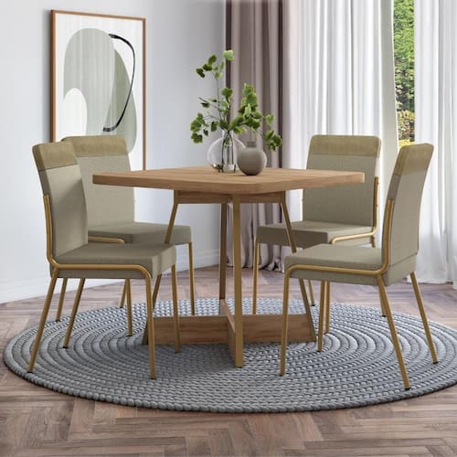 O Conjunto Sala de Jantar 4 Cadeiras Déli Carraro é uma fusão de conforto e estilo contemporâneo. A cadeira 1739 foi desenvolvida para atender às necessidades do usuário que preza por uma bela sala de jantar. Com linhas simples e transmitindo modernidade, ela se encaixa facilmente em diversos estilos de ambientes. Além disso, possui encosto e assento estofados, trazendo conforto e harmonia ao espaço em que será inserida. A mesa de jantar maior 1593 é a melhor opção para ambientes compactos. Elas comportam bem 4 lugares, se encaixa facilmente em ambientes com personalidade. Trazendo a sensação de aconchego para o ambiente com a combinação de acabamento em BP e tubo de aço.