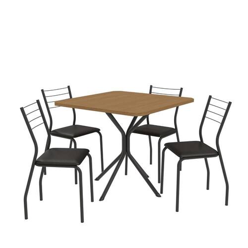 Renove sua sala de jantar com o Conjunto Kappesberg Crome, que combina elegância, durabilidade e conforto. Com uma mesa robusta e cadeiras ergonômicas, este conjunto é perfeito para quem busca sofisticação e funcionalidade no dia a dia. O design moderno, com estrutura em metal preto fosco e tampo de madeira na cor canela, harmoniza-se facilmente com diferentes estilos de decoração.
