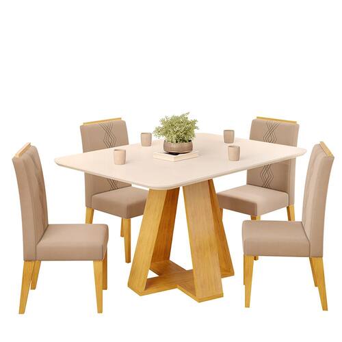 Conjunto Sala de Jantar 4 Cadeiras Tampo Chanfrado Retangular 120cm com Vidro Kiara Cedro Off White Yasmin Veludo Kraft - DJ Móveis