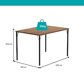Medidas: Largura: 120 cm | Altura: 76,2 cm | Profundidade: 80 cm Peso: 19,14 Kg Estrutura: Tubos de aço Tampo: MDP 25mm Ponteira: Plástica