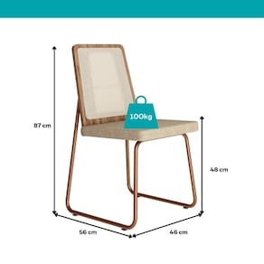 Especificações da Cadeira: Medidas totais: Largura: 46 cm | Altura: 87 cm | Profundidade: 56 cm Peso total (04 unidades): 27,6 Kg