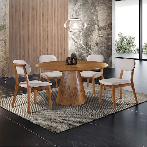 Conjunto Sala de Jantar 4 Lugares Carlo ? Mesa Redonda 100 Laminado Madeira Maciça Cinamomo