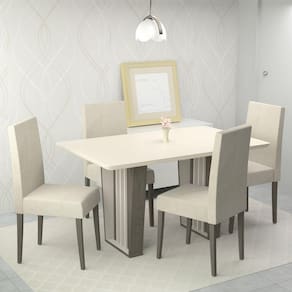 A Mesa de Jantar Flórida é uma daquelas mesas que fará toda diferença em sua sala de jantar. Produzida com um design moderno, o desenho de sua base é um dos grandes destaques da peça. Medida da Mesa (A x L x P): 80cm x 90cm x 130cm Peso da Mesa: 42 kg Mesa suporta até: 35.0000 Acabamento da Cadeira/Banco: Pintura UV Acabamento da Mesa: Pintura UV Almofada do assento: Fixa Altura do Conjunto: 78 Ambiente Principal: Sala de Jantar Cadeira/Banco estofada: Sim Cadeira/Banco suporta até: 75.0000 codigo_ean: 7909903050613 Complexidade da Montagem: Baixa: pode ser montado por uma pessoa sozinha Cor: Wengue Cor da Base: Marrom Cor do Produto: Wengue Cor do Tampo: Branco Cor Secundária: Marrom De Canto (Canto Alemão): Não Design da Base: Em V Enchimento do Assento: Espuma D-23 Enchimento do Encosto: Espuma D-23 Escala de Brilho: Brilhante Espessura do Tampo: 25 mm Estrutura do Assento: Espuma Estrutura do Encosto: Espuma Formato do Tampo: Retangular Itens Inclusos: 1 Mesa com 4 Cadeiras, kit de ferragem e manual de montagem Manual de Montagem e Instalação: https://product-hub-prd.madeiramadeira.com.br/728698/documents/7b97c5e1-df20-4314-ae83-e5bc155dc4c3rida1300x900cadeiramontana.pdf Material da Base da Mesa: Aço Material da Estrutura da Cadeira: Aço Material do Tampo: MDF Medida da Base (A x L x P): 77cm x 19cm x 54cm Medida da Cadeira/Banco (A x L x P): 100cm x 43cm x 55cm Medida do Tampo (L x C x E): 90cm x 130cm x 2,9cm Mesa Extensível: Não Necessita Montagem: Sim Origem do Produto: Nacional Peso da Cadeira/Banco: 8,8 kg Possui Apoio para Braços: Não Possui Apoio Para os Pés: Não Possui Suporte Giratório: Não Quantidade de Lugares: 04 Recomendações de Uso, Manutenção e Limpeza: Não usar produto abrasivo. Não lavar as cadeiras. Revestimento da Cadeira/Banco: Napa Sistema de Montagem: Parafusos Vidro Temperado: Não Ean: 7909903050613