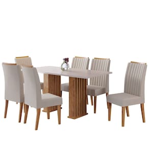 A Sala de Jantar Megan 160x80cm é uma excelente opção para quem busca estilo e praticidade. Sua mesa possui tampo pintado em MDP de 25cm, garantindo resistência e durabilidade, com canto reto que traz um design mais moderno e sofisticado. A base com detalhes ripados confere um toque de elegância, equilibrando perfeitamente a robustez da mesa. Acompanhando a mesa, as 6 cadeiras Fran são fabricadas em MDP/MDF, oferecendo estrutura firme e confiável. O assento é preenchido com espuma D26, proporcionando conforto ideal para momentos de refeição. O revestimento em tecido veludo das cadeiras traz um toque luxuoso, tornando o conjunto ainda mais acolhedor e sofisticado. A Sala de Jantar Megan é perfeita para compor um ambiente elegante e funcional. Medida da Mesa (A x L x P): A:82,5 x L:160 x P:80cm Peso da Mesa: 40,3 kg Mesa suporta até: 50.0000 Acabamento da Cadeira/Banco: Pintura UV Acabamento da Mesa: Pintura UV Acompanha Manual de Instalação: Sim Ambiente Principal: Sala de Estar Cadeira/Banco Estofada: Encosto e Assento Estofados Cadeira/Banco estofada: Encosto e Assento Estofados Cadeira/Banco suporta até: 90.0000 codigo_ean: 7900288153395 Complexidade da Montagem: Média: pode ser montado por mais de uma pessoa e/ou necessite de maior conhecimento para montagem Configuração do Conjunto: Mesa com Cadeiras Cor: Mel /Blonde/ Pastel Cor das Cadeiras: Bege Cor do Produto: Mel /Blonde/ Pastel Cor Secundária: Bege De Canto (Canto Alemão): Não Enchimento do Assento: Espuma D-26 Enchimento do Encosto: Espuma D-12 Escala de Brilho: Semi-Brilho Espessura do Tampo: 25 mm Estrutura do Assento: MDP/Espuma Estrutura do Encosto: MDP Formato do Tampo: Retangular Informações Complementares: Sala de Jantar 6 lugares Itens Inclusos: 1 Mesa, 6 Cadeiras, Kit Ferragem e Manual de Montagem Largura do Conjunto: 160 cm Linha ou Coleção: Fran Manual de Montagem e Instalação: https://product-hub-prd.madeiramadeira.com.br/992455/documents/69bd6e8b-12b2-4c8a-b8ba-b866af93fa74282192052817442230038848.pdf Marca: Viero Material da Base da Mesa: MDP Material da Estrutura da Cadeira: MDF/MDP Material do Tampo: MDP Material Principal: MDF/MDP Material Principal das Cadeiras/Bancos: MDF/MDP Medida da Cadeira/Banco (A x L x P): A:101 x L:42 x P:58,5cm Medida do Tampo (L x C x E): L:160 x C:80 x E:2,5cm Mesa Extensível: Não Necessita Montagem: Sim Origem do Produto: Nacional Peso da Cadeira/Banco: 8 kg Possui Apoio Para os Pés: Não Possui Vidro: Não Profundidade do Conjunto: 80 cm Quantidade de Cadeiras: 6 Quantidade de Lugares: 06 Recomendações de Uso, Manutenção e Limpeza: limpar com pano levemente umedecido em água Revestimento da Cadeira/Banco: Veludo Sistema de Montagem: Parafusos,cavilhas