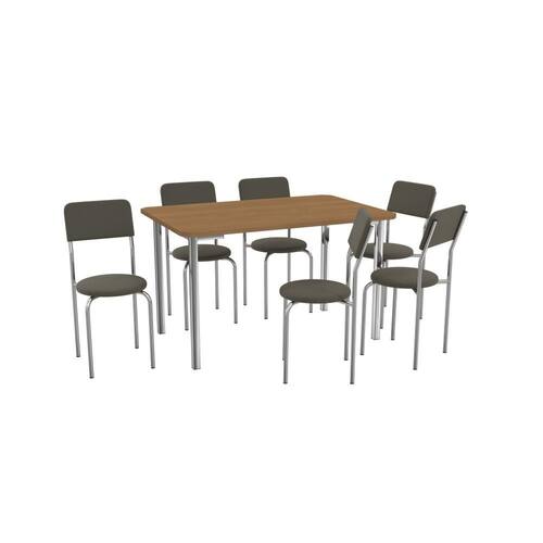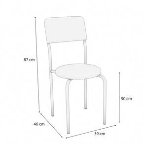CADEIRAS MALI: 6 Unidades Dimensões: 39 cm (C) x 46 cm (L) x 87 cm (A) Altura do Assento: 50 cm Peso por Unidade: 4,1 kg (Total: 24,6 kg) Estrutura Metálica Cromada com Brilho Revestimento: Tecido Corino Cinza com Espuma D-26 Peso Suportado: até 130 kg Sistema de Montagem: Parafuso Philips