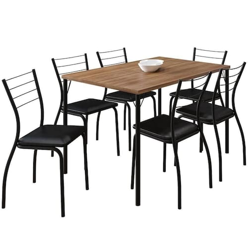 Altura das cadeiras (cm): 84,5 cm | Estado de Origem: RS | Cor Predominante: Preto | Cor do tampo: Freijó | Cor do assento: Preto | Cor da estrutura: Preto | Peso do produto (kg): 40.380000000000003 | Fabricante: Móveis Carraro | Marca: Móveis Carraro | Profundidade das cadeiras (cm): 45,5 cm | Quantidade de cadeiras: 6 | Largura das cadeiras (cm): 39 cm | Altura da mesa (cm): 76,2 cm | Comnto da mesa (cm): 120 cm | Material das cadeiras: Metal | Modelo: Valência | Requer montagem: Sim | Formato da mesa: Retangular | Largura da mesa (cm): 80 cm | Material da mesa: MDP | Altura do produto (cm): 84,5 cm | Largura do produto (cm): 120 cm | Profundidade do produto (cm): 80 cm | Produto: Conjunto de Mesa e Cadeira | Nome Simples no Fornecedor: Conjunto Sala de Jantar 6 Cadeiras Valencia Carraro Freijó Preto | Instruções/Cuidados: Limpeza com pano seco. | Conteúdo da Embalagem: 1 Mesa e 6 Cadeiras | Peso do Produto com Embalagem (kg): 40,38 kg | Altura do Produto com Embalagem (cm): 80 | Largura do Produto com Embalagem (cm): 77.5 | Comnto do Produto com Embalagem (cm): 78 | Descrição do Tamanho: 84,5 cm x 80 cm x 120 cm | PrazoExp: 2 | Material para Filtro: Metal | Tipo de Produto: Doméstico | Número de Itens: 7 | Assembly Required: Sim | Included Components: Mesa e Cadeiras | External Certification: Não Aplicável | Frágil: Sim | Bullet Point 0: Cadeiras com assento estofado em MDP e design curvilíneo moderno. | Bullet Point 1: Estrutura em tubos de aço e acabamento em pintura epóxi. | Bullet Point 2: Acompanha sapatas que protegem o piso e evitam ruídos. | supplier_declared_dg_hz_regulation: Não Aplicável | Bullet Point 3: Mesa com tampo de MDP de 25mm, suporta até 30 kg. | Bullet Point 4: Cadeiras suportam até 100 Kg e tem a estrutura soldada. | Model Number: 1 | number_of_boxes: 5 | part_number: 1 | batteries_required: não
