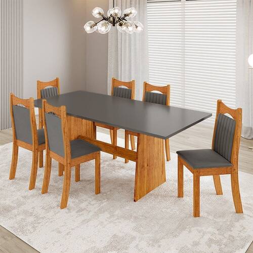 O Conjunto Sala de Jantar Riviera 6 Lugares é perfeito para quem busca funcionalidade e elegância. A mesa retangular possui tampo em MDP sem vidro, garantindo resistência e praticidade no dia a dia. Seu design versátil combina facilmente com diferentes estilos de decoração. Acompanha 6 cadeiras modelo Dalas, produzidas em MDF/MDP com excelente acabamento. Os assentos com espuma D26 proporcionam conforto ideal para as refeições. O encosto bordado e o revestimento em tecido veludo agregam sofisticação e charme ao ambiente. Medida da Mesa (A x L x P): A:78 x L:160 x P:80cm Peso da Mesa: 28,1 kg Mesa suporta até: 50 kg Acabamento da Cadeira/Banco: Pintura UV Acabamento da Mesa: Pintura UV Acompanha Manual de Instalação: Sim Ambiente Principal: Sala de Jantar Cadeira/Banco Estofada: Encosto e Assento Estofados Cadeira/Banco estofada: Encosto e Assento Estofados Cadeira/Banco Suporta Até: 90.0000 Cadeira/Banco suporta até: 90 kg codigo_ean: 7900288337801 Complexidade da Montagem: Média: pode ser montado por mais de uma pessoa e/ou necessite de maior conhecimento para montagem Configuração do Conjunto: Mesa com Cadeiras Cor: Mel/Cinza Cor das Cadeiras: Cinza Cor do Produto: Mel/Cinza Cor Secundária: Cinza De Canto (Canto Alemão): Não Enchimento do Assento: Espuma D-26 Escala de Brilho: Semi-Brilho Espessura do Tampo: 25 mm Estrutura do Assento: MDP/Espuma Estrutura do Encosto: MDF/MDP Formato do Tampo: Retangular Informações Complementares: Sala de Jantar 6 lugares Itens Inclusos: 1 Mesa, 6 Cadeiras, Kit Ferragem e Manual de Montagem Largura do Conjunto: 160 cm Linha ou Coleção: Riviera Manual de Montagem e Instalação: https://product-hub-prd.madeiramadeira.com.br/211196271/documents/63c2d061-1aae-46da-af5f-a9ca9e08a45e340536152817718556952525.pdf Marca: Viero Material da Base da Mesa: MDP Material da Estrutura da Cadeira: MDF/MDP Material do Tampo: MDP Material Principal: MDF/MDP Material Principal das Cadeiras/Bancos: MDF/MDP Medida da Cadeira/Banco (A x L x P): A:98,5 x L:38 x P:50,2cm Medida do Tampo (L x C x E): L:160 x C:80 x E:2,5cm Mesa Extensível: Não Necessita Montagem: Sim Origem do Produto: Nacional Peso da Cadeira/Banco: 6,75 kg Possui Apoio Para os Pés: Não Possui Vidro: Não Profundidade do Conjunto: 80 cm Quantidade de Cadeiras: 6 Quantidade de Lugares: 06 Recomendações de Uso, Manutenção e Limpeza: Limpar com pano levemente umedecido em água Revestimento da Cadeira/Banco: Veludo Sistema de Montagem: Parafusos, cavilhas