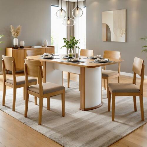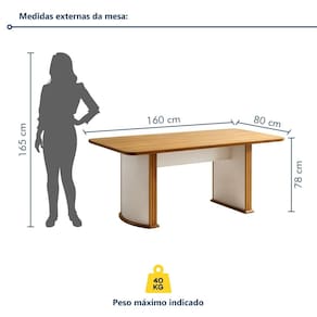Com 160 cm de comprimento, ela acomoda até 6 pessoas com conforto. As cadeiras estofadas e ergonômicas oferecem o apoio ideal para refeições longas e conversas sem pressa. Um conjunto completo, funcional e cheio de estilo para deixar sua sala de jantar mais bonita e acolhedora.