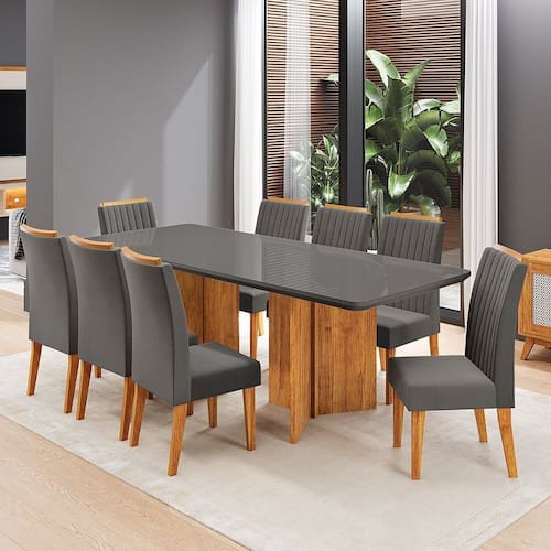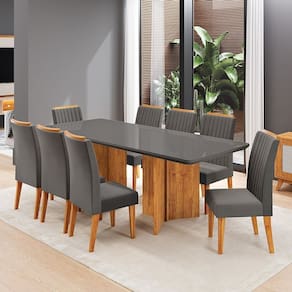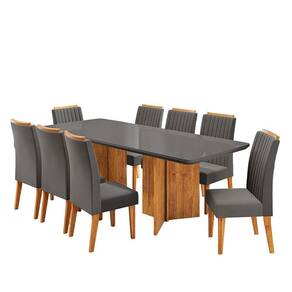 Conjunto Sala de Jantar 8 Lugares Retangular Tampo de Vidro Mdf Holden Mel/Grafite/Cinza