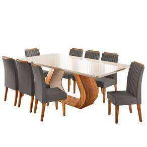 Conjunto Sala de Jantar 8 Lugares Retangular Mazara, ideal para quem busca elegância, conforto e espaço para reunir a família. Seu tampo de 2,00x90 em MDF 4,0cm com vidro oferece resistência, sofisticação e um acabamento moderno para o ambiente. Os cantos arredondados trazem mais segurança no uso diário e deixam o design ainda mais harmonioso. As cadeiras em MDP/MDF garantem boa durabilidade e estrutura firme, perfeitas para compor sua sala de jantar. O encosto bordado com espaldar valoriza o conjunto com um toque de charme e requinte. Os assentos com espuma D26 proporcionam mais conforto, enquanto o revestimento em tecido veludo traz maciez e sofisticação. Uma excelente opção para transformar sua sala de jantar em um espaço acolhedor, bonito e funcional. Medida da Mesa (A x L x P): A:77,8 x L:200 x P:90cm Peso da Mesa: 66,6 kg Mesa suporta até: 50 kg Acabamento da Cadeira/Banco: Pintura UV Acabamento da Mesa: Pintura UV Acompanha Manual de Instalação: Sim Ambiente Principal: Sala de Jantar Cadeira/Banco Estofada: Encosto e Assento Estofados Cadeira/Banco estofada: Encosto e Assento Estofados Cadeira/Banco Suporta Até: 90.0000 Cadeira/Banco suporta até: 90 kg codigo_ean: 7900288361981 Complexidade da Montagem: Média: pode ser montado por mais de uma pessoa e/ou necessite de maior conhecimento para montagem Configuração do Conjunto: Mesa com Cadeiras Cor: Mel/Off White/Cinza Cor das Cadeiras: Cinza Cor do Produto: Mel/Off White/Cinza Cor Secundária: Cinza De Canto (Canto Alemão): Não Enchimento do Assento: Espuma D-26 Escala de Brilho: Semi-Brilho Espessura do Tampo: 40 mm Estrutura do Assento: MDP Estrutura do Encosto: MDP Formato do Tampo: Retangular Informações Complementares: Sala de Jantar 8 lugares Itens Inclusos: 1 Mesa, 8 Cadeiras, Kit Ferragem e Manual de Montagem Largura do Conjunto: 200 cm Linha ou Coleção: Mazara Manual de Montagem e Instalação: https://product-hub-prd.madeiramadeira.com.br/435207364/documents/effae192-4a0a-4fc4-921a-f7cff25b05e4346001052817744603162507.pdf Marca: Viero Material da Base da Mesa: MDF/MDP Material da Estrutura da Cadeira: MDF/MDP Material do Tampo: Vidro/MDF Material Principal: MDF/MDP Material Principal das Cadeiras/Bancos: MDF/MDP Medida da Cadeira/Banco (A x L x P): A:101 x L:42 x P:58,5cm Medida do Tampo (L x C x E): L:200 x C:90 x E:4,0mm Mesa Extensível: Não Necessita Montagem: Sim Origem do Produto: Nacional Peso da Cadeira/Banco: 8 kg Possui Apoio Para os Pés: Não Possui Vidro: Sim Profundidade do Conjunto: 90 cm Quantidade de Cadeiras: 8 Quantidade de Lugares: 08 Recomendações de Uso, Manutenção e Limpeza: limpar com pano levemente umedecido em água Revestimento da Cadeira/Banco: Veludo Sistema de Montagem: Parafusos,cavilhas