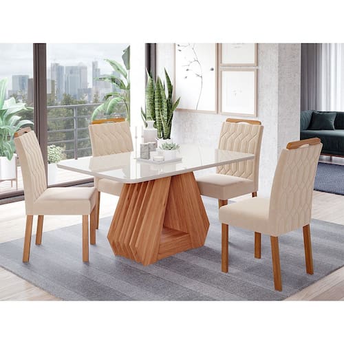 Conjunto Sala de Jantar Ágata Tampo em MDF e Vidro Com 4 Cadeiras Paola Cimol - Nude