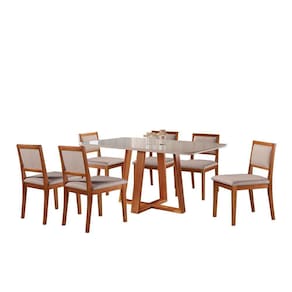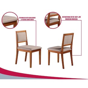 Conjunto Sala de Jantar 6 Lugares Aline - Mesa e Cadeiras Madeira Macica Tecido Linho Areia