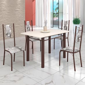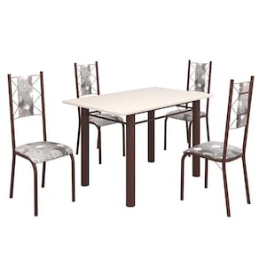 Conjunto Sala de Jantar Bahia Mesa Tubo 120x75cm Tampo Madeira com 4 Cadeiras Paraopeba/Marrom