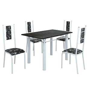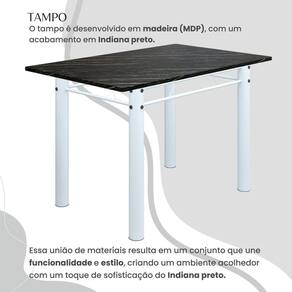 Conjunto Sala de Jantar Bahia Mesa Tubo 120x75cm Tampo Madeira Indiana com 4 Cadeiras Preto Floral/Branco