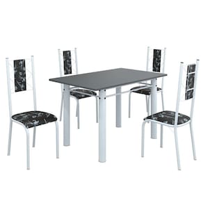 O Conjunto Sala de Jantar Bahia é uma ótima escolha para quem busca combinar estilo e praticidade. Ele apresenta uma mesa retangular com um design elegante e moderno, acompanhada por quatro cadeiras. A mesa tem uma estrutura tubular de 3", que oferece estabilidade ao conjunto. O tampo em pedra grafite oferece um visual moderno e sofisticado. A tonalidade do grafite confere elegância e versatilidade ao ambiente, enquanto a pedra proporciona durabilidade e resistência a riscos e manchas. Essa combinação de estética e funcionalidade cria um aspecto contemporâneo e prático, tornando o tampo em pedra grafite uma escolha marcante para adicionar estilo e resistência à sua sala de jantar. As quatro cadeiras incluídas no conjunto apresentam um design que combina harmoniosamente com a mesa. Acabamento da Cadeira/Banco: Pintura Texturizada Acabamento da Mesa: Pintura UV Acompanha Manual de Instalação: Sim Almofada do assento: Fixa Almofada do encosto: Fixa Ambiente Principal: Sala de Jantar Cadeira/Banco estofada: Sim Cadeira/Banco suporta até: 120 Complexidade da Montagem: Média: pode ser montado por mais de uma pessoa e/ou necessite de maior conhecimento para montagem Cor: Preto Floral/Branco Cor do Produto: Preto Floral/Branco Cor do Tampo: Cinza De Canto (Canto Alemão): Não Enchimento do Assento: Espuma D-12 Enchimento do Encosto: Espuma D-12 Escala de Brilho: Semi-Fosco Espessura do Tampo: 18 Estrutura do Assento: Aço Estrutura do Encosto: MDP de 15mm, espuma 1,2mm, courino, ferro 4,5. Formato do Tampo: Retangular Itens Inclusos: 1 Mesa, 4 Cadeiras, Kit Ferragens e Manual de Montagem Linha ou Coleção: Bahia Manual de Montagem e Instalação: https://cdn2.madeiramadeira.com.br/atributo/moveis-teixeira/1495440-cadeira-bahia-tampo-pedra.pdf Material da Base da Mesa: Aço Material da Estrutura da Cadeira: Aço Material Principal das Cadeiras/Bancos: Aço Medida da Base (A x L x P): 75,5cm x 65cm x 85,5cm Medida da Cadeira/Banco (A x L x P): 100cm x 36cm x 52cm Medida da Mesa (A x L x P): 75cm x 120cm x 75cm Medida do Tampo (L x C x E): 120cm x 75cm x 1,8cm Mesa Dobrável: Não Mesa Extensível: Não Mesa suporta até: 8 Necessita Montagem: Sim Origem do Produto: Nacional Peso da Cadeira/Banco: 3.04 Peso da Mesa: 49.76 Possui Apoio para Braços: Não Possui Apoio Para os Pés: Não Possui Prateleiras: Não Possui Rodízio: Não Possui Suporte Giratório: Não Possui Vidro: Não Quantidade de Cadeiras: 4 Recomendações de Uso, Manutenção e Limpeza: Usar um pano de tecido macio e seco, evitar detergentes, alvejantes e produtos químicos de limpeza; no tampo usar tecido macio levemente umedecido. Revestimento da Cadeira/Banco: Courino Sistema de Montagem: Parafusos Tipo de Assento: Fixo Tipo de Encosto: Estofado Ean: 7909903410660