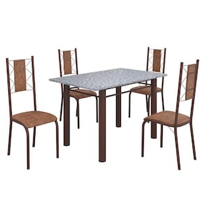 O Conjunto Sala de Jantar Bahia é uma ótima escolha para quem busca combinar estilo e praticidade. Este conjunto apresenta uma mesa retangular com um design elegante e moderno, acompanhada por quatro cadeiras. A mesa tem uma estrutura tubular de 3", que oferece estabilidade ao conjunto. O tampo em pedra granito ocre apresenta uma estética sofisticada e acolhedora. A tonalidade ocre adiciona calor e elegância ao ambiente, enquanto a pedra granito oferece durabilidade e resistência a riscos e manchas. Essa combinação de cores marromis e resistência prática resulta em um visual clássico e funcional, tornando o tampo em pedra granito ocre uma ótima escolha para aprimorar sua sala de jantar. As quatro cadeiras incluídas no conjunto apresentam um design que combina harmoniosamente com a mesa. Acabamento da Cadeira/Banco: Pintura UV Acabamento da Mesa: Pintura UV Acompanha Manual de Instalação: Sim Almofada do assento: Fixa Ambiente Principal: Cozinha Cadeira/Banco estofada: Sim Cadeira/Banco suporta até: 120 Complexidade da Montagem: Média: pode ser montado por mais de uma pessoa e/ou necessite de maior conhecimento para montagem Cor: Marrom Cor do Produto: Marrom De Canto (Canto Alemão): Não Enchimento do Assento: Espuma D-12 Escala de Brilho: Semi-Fosco Espessura do Tampo: 18 Estrutura do Assento: MDP de 15mm, espuma 1,2mm, courino, ferro 4,5. Formato do Tampo: Retangular Itens Inclusos: 1 Mesa, 4 Cadeiras, Kit Ferragens e Manual de Montagem Linha ou Coleção: Bahia Manual de Montagem e Instalação: https://cdn2.madeiramadeira.com.br/atributo/moveis-teixeira/1493869-cadeira-bahia-tampo-pedra.pdf Material da Base da Mesa: Aço Material da Estrutura da Cadeira: Aço Material Principal das Cadeiras/Bancos: Aço Medida da Base (A x L x P): 75,5cm x 65cm x 85,5 cm Medida da Cadeira/Banco (A x L x P): 100 cm x 36 cm x 52 cm Medida da Mesa (A x L x P): 75 cm x 120 cm x 75 cm Medida do Tampo (L x C x E): 120 cm x 75 cm x 1,8 cm Mesa suporta até: 8 Necessita Montagem: Sim Origem do Produto: Nacional Peso da Cadeira/Banco: 3.04 Peso da Mesa: 57 Possui Apoio para Braços: Não Possui Apoio Para os Pés: Não Possui Rodízio: Não Quantidade de Cadeiras: 4 Recomendações de Uso, Manutenção e Limpeza: Usar um pano de tecido macio e seco, evitar detergentes, alvejantes e produtos químicos de limpeza; no tampo usar tecido macio levemente umedecido. Revestimento da Cadeira/Banco: Courino Sistema de Montagem: Parafusos Tipo de Assento: Fixo Tipo de Encosto: Fixo Ean: 7909903410233