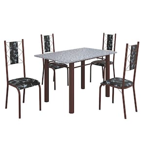 O Conjunto Sala de Jantar Bahia é uma ótima escolha para quem busca combinar estilo e praticidade. Este conjunto apresenta uma mesa retangular com um design elegante e moderno, acompanhada por quatro cadeiras. A mesa tem uma estrutura tubular de 3", que oferece estabilidade ao conjunto. O tampo em pedra granito ocre apresenta uma estética sofisticada e acolhedora. A tonalidade ocre adiciona calor e elegância ao ambiente, enquanto a pedra granito oferece durabilidade e resistência a riscos e manchas. Essa combinação de cores marromis e resistência prática resulta em um visual clássico e funcional, tornando o tampo em pedra granito ocre uma ótima escolha para aprimorar sua sala de jantar. As quatro cadeiras incluídas no conjunto apresentam um design que combina harmoniosamente com a mesa. Acabamento da Cadeira/Banco: Pintura UV Acabamento da Mesa: Pintura UV Acompanha Manual de Instalação: Sim Almofada do assento: Fixa Ambiente Principal: Cozinha Cadeira/Banco estofada: Sim Cadeira/Banco suporta até: 120 Complexidade da Montagem: Média: pode ser montado por mais de uma pessoa e/ou necessite de maior conhecimento para montagem Cor: Preto Floral/Marrom Cor do Produto: Preto Floral/Marrom De Canto (Canto Alemão): Não Enchimento do Assento: Espuma D-12 Escala de Brilho: Semi-Fosco Espessura do Tampo: 18 Estrutura do Assento: MDP de 15mm, espuma 1,2mm, courino, ferro 4,5. Formato do Tampo: Retangular Itens Inclusos: 1 Mesa, 4 Cadeiras, Kit Ferragens e Manual de Montagem Linha ou Coleção: Bahia Manual de Montagem e Instalação: https://cdn2.madeiramadeira.com.br/atributo/moveis-teixeira/1493868-cadeira-bahia-tampo-pedra.pdf Material da Base da Mesa: Aço Material da Estrutura da Cadeira: Aço Material Principal das Cadeiras/Bancos: Aço Medida da Base (A x L x P): 75,5cm x 65cm x 85,5 cm Medida da Cadeira/Banco (A x L x P): 100 cm x 36 cm x 52 cm Medida da Mesa (A x L x P): 75cm x 120 cm x 75 cm Medida do Tampo (L x C x E): 120 cm x 75 cm x 1,8 cm Mesa suporta até: 8 Necessita Montagem: Sim Origem do Produto: Nacional Peso da Cadeira/Banco: 3.04 Peso da Mesa: 57 Possui Apoio para Braços: Não Possui Apoio Para os Pés: Não Possui Rodízio: Não Quantidade de Cadeiras: 4 Recomendações de Uso, Manutenção e Limpeza: Usar um pano de tecido macio e seco, evitar detergentes, alvejantes e produtos químicos de limpeza; no tampo usar tecido macio levemente umedecido. Revestimento da Cadeira/Banco: Courino Sistema de Montagem: Parafusos Tipo de Assento: Fixo Tipo de Encosto: Fixo Ean: 7909903410226
