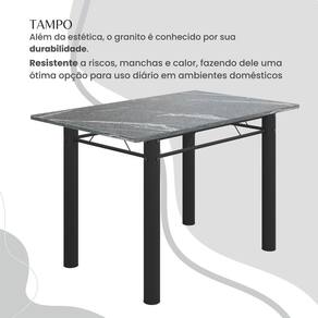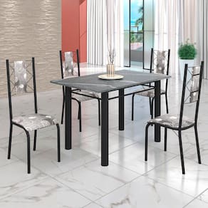O Conjunto Sala de Jantar Bahia é uma ótima escolha para quem busca combinar estilo e praticidade. Este conjunto apresenta uma mesa retangular com um design elegante e moderno, acompanhada por quatro cadeiras. A mesa tem uma estrutura tubular de 3", que oferece estabilidade ao conjunto. O tampo em pedra granito Topázio oferece uma aparência distinta e refinada. A tonalidade Topázio adiciona um toque de elegância e suavidade ao ambiente, enquanto a pedra granito oferece durabilidade e resistência a riscos e manchas. Essa combinação de cor e resistência resulta em um visual sofisticado e prático, tornando o tampo em pedra granito Topázio uma escolha elegante e duradoura para aprimorar a sua sala de jantar. Acabamento da Cadeira/Banco: Pintura UV Acabamento da Mesa: Pintura UV Acompanha Manual de Instalação: Sim Almofada do assento: Fixa Ambiente Principal: Sala de Jantar Cadeira/Banco estofada: Sim Cadeira/Banco suporta até: 120 Complexidade da Montagem: Média: pode ser montado por mais de uma pessoa e/ou necessite de maior conhecimento para montagem Cor: Paraopeba/Preto Fosco Cor do Produto: Paraopeba/Preto Fosco De Canto (Canto Alemão): Não Enchimento do Assento: Espuma D-12 Escala de Brilho: Semi-Fosco Espessura do Tampo: 18 Estrutura do Assento: MDP de 15mm, espuma 1,2mm, courino, ferro 4,5. Formato do Tampo: Retangular Itens Inclusos: 1 Mesa, 4 Cadeiras, Kit Ferragens e Manual de Montagem Linha ou Coleção: Bahia Manual de Montagem e Instalação: https://cdn2.madeiramadeira.com.br/atributo/moveis-teixeira/1493896-cadeira-bahia-tampo-pedra.pdf Material da Base da Mesa: Aço Material da Estrutura da Cadeira: Aço Material Principal das Cadeiras/Bancos: Aço Medida da Base (A x L x P): 75,5cm x 65cm x 85,5cm Medida da Cadeira/Banco (A x L x P): 100cm x 36cm x 52cm Medida da Mesa (A x L x P): 75cm x 120cm x 75cm Medida do Tampo (L x C x E): 120cm x 75cm x 1,8cm Mesa suporta até: 8 Necessita Montagem: Sim Origem do Produto: Nacional Peso da Cadeira/Banco: 3.04 Peso da Mesa: 59.05 Possui Apoio para Braços: Não Possui Apoio Para os Pés: Não Possui Rodízio: Não Quantidade de Cadeiras: 4 Recomendações de Uso, Manutenção e Limpeza: Usar um pano de tecido macio e seco, evitar detergentes, alvejantes e produtos químicos de limpeza; no tampo usar tecido macio levemente umedecido. Revestimento da Cadeira/Banco: Courino Sistema de Montagem: Parafusos Tipo de Assento: Fixo Tipo de Encosto: Fixo Ean: 7909903410448