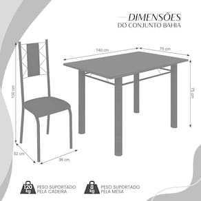 Medida da Mesa (A x L x P): 75cm x 140cm x 75cm