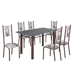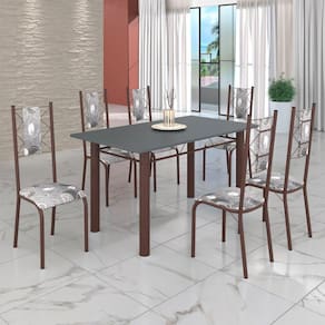 Conjunto Sala de Jantar Bahia Mesa Tubo 140x75cm Tampo Pedra com 6 Cadeiras Paraopeba / Marrom