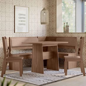 O conjunto canto alemão Afrodite destaca-se pela impressão dos detalhes amadeirados, replicando um design clean e despojado, dando um toque de modernidade ao ambiente e deixando o espaço das refeições ainda mais charmoso. Os acabamentos oferecem maior qualidade e durabilidade ao móvel.