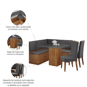 MODELO: Conjunto Sala de Jantar Canto Alemão Liebe com Mesa Lord e 2 Cadeiras Bele Veludo