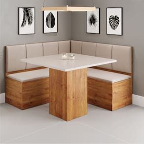 O Conjunto Sala de Jantar Canto Alemão Liebe com Mesa Lord é a escolha perfeita para transformar sua cozinha ou sala de jantar com charme, funcionalidade e conforto. Com design inteligente, ele é ideal para ambientes compactos que não abrem mão da elegância. O canto possui baú interno, oferecendo praticidade e espaço extra para organização. Os assentos são acolchoados e revestidos em veludo, proporcionando um toque macio e visual sofisticado. A mesa conta com tampo em pintura UV, que garante maior durabilidade e um acabamento moderno, enquanto sua base firme completa o design com versatilidade e estilo.