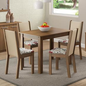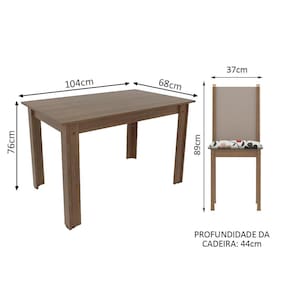 A mesa é retangular e acomoda muito bem 4 pessoas. As cadeiras são produzidas em MDF/MDP são mais firmes com encosto em madeira e assento estofado em tecido para harmonizar com qualquer decoração.