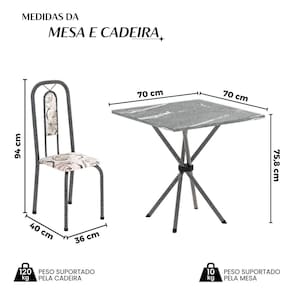Medida da Mesa (A x L x P): 75,8 cm x 70 cm x 70 cm