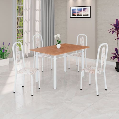 Quer deixar sua casa completa e prática? Uma dica bacana de como transformar o seu lar, deixando-o mais receptivo e bonito? Então você precisa de móveis indispensáveis para deixar seu lar muito mais aconchegante, receptivo e sempre disponível para receber a visita de amigos, familiares e convidados. Você vai se apaixonar por este incrível e moderno Conjunto de Mesa com 4 Cadeiras. Ideal para cozinha, ele é a melhor opção para completar o espaço que você desejar. Aproveite!! Medida da Mesa (A x L x P): 75,8 cm x 120 cm x 72 cm Peso da Mesa: 18,42 kg Mesa suporta até: 10.0000 Acabamento da Cadeira/Banco: Pintura Texturizada Acabamento da Mesa: Pintura Texturizada Ambiente Principal: Cozinha Cadeira/Banco Estofada: Encosto e Assento Estofados Cadeira/Banco estofada: Encosto e Assento Estofados Cadeira/Banco suporta até: 120.0000 codigo_ean: 7900288155658 Complexidade da Montagem: Baixa: pode ser montado por uma pessoa sozinha Cor: Bege / Branco Cor do Produto: Bege / Branco Cor Secundária: Bege De Canto (Canto Alemão): Não Enchimento do Assento: Espuma D-16 Escala de Brilho: Semi-Brilho Espessura do Tampo: 1,5 mm Estrutura do Assento: MDP Formato do Tampo: Retangular Itens Inclusos: 1 Mesa, 4 Cadeiras, Kit Ferragens e Manual de Montagem Linha ou Coleção: Lívia Manual de Montagem e Instalação: https://product-hub-prd.madeiramadeira.com.br/568496660/documents/27e643d5-0c0e-4427-864d-73cc61a704be12743219352817418949403106.pdf Marca: Soma Móveis Material da Base da Mesa: Aço Material da Estrutura da Cadeira: Aço Material do Tampo: MDF Medida da Cadeira/Banco (A x L x P): 94 cm x 36 cm x 40 cm Medida do Tampo (L x C x E): 120cm x 72cm x 1,5 cm Mesa Extensível: Não Necessita Montagem: Sim Origem do Produto: Nacional Peso da Cadeira/Banco: 2,28 kg Possui Apoio Para os Pés: Não Quantidade de Cadeiras: 4 Quantidade de Lugares: 04 Recomendações de Uso, Manutenção e Limpeza: Não permitir que molhe os pés da base, usar um pano de tecido macio e seco, evitar detergentes, alvejantes e produtos químicos de limpeza; no tampo usar tecido macio levemente umedecido. Revestimento da Cadeira/Banco: Couro Ecológico Sistema de Montagem: Parafusos