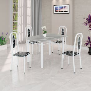 Quer deixar sua casa completa e prática? Uma dica bacana de como transformar o seu lar, deixando-o mais receptivo e bonito? Então você precisa de móveis indispensáveis para deixar seu lar muito mais aconchegante, receptivo e sempre disponível para receber a visita de amigos, familiares e convidados. Você vai se apaixonar por este incrível e moderno Conjunto de Mesa com 4 Cadeiras. Ideal para cozinha, ele é a melhor opção para completar o espaço que você desejar. Aproveite!! Medida da Mesa (A x L x P): 75,8 cm x 120 cm x 75 cm Peso da Mesa: 54,8 kg Mesa suporta até: 10.0000 Acabamento da Cadeira/Banco: Pintura Texturizada Acabamento da Mesa: Pintura Texturizada Ambiente Principal: Cozinha Cadeira/Banco Estofada: Encosto e Assento Estofados Cadeira/Banco estofada: Encosto e Assento Estofados Cadeira/Banco suporta até: 120.0000 codigo_ean: 7900288149480 Complexidade da Montagem: Baixa: pode ser montado por uma pessoa sozinha Cor: Preto / Branco Cor do Produto: Preto / Branco Cor Secundária: Cinza De Canto (Canto Alemão): Não Enchimento do Assento: Espuma D-16 Escala de Brilho: Semi-Brilho Espessura do Tampo: 1,5 mm Estrutura do Assento: MDP Formato do Tampo: Retangular Itens Inclusos: 1 Mesa + 4 Cadeiras + 1 Kit Ferragens + 1 Manual de Montagem Linha ou Coleção: Lívia Manual de Montagem e Instalação: https://product-hub-prd.madeiramadeira.com.br/643170778/documents/09b3cad3-05ce-4b97-9394-1c9a4c4e76df12741541352817418186330048.pdf Marca: Soma Móveis Material da Base da Mesa: Aço Material da Estrutura da Cadeira: Aço Material do Tampo: Granito Medida da Cadeira/Banco (A x L x P): 94 cm x 36 cm x 40 cm Medida do Tampo (L x C x E): 120cm x 75cm x 1,5 cm Mesa Extensível: Não Necessita Montagem: Sim Origem do Produto: Nacional Peso da Cadeira/Banco: 2,28 kg Possui Apoio Para os Pés: Não Quantidade de Cadeiras: 4 Quantidade de Lugares: 04 Recomendações de Uso, Manutenção e Limpeza: Não permitir que molhe os pés da base, usar um pano de tecido macio e seco, evitar detergentes, alvejantes e produtos químicos de limpeza; no tampo usar tecido macio levemente umedecido. Revestimento da Cadeira/Banco: Couro Ecológico Sistema de Montagem: Parafusos