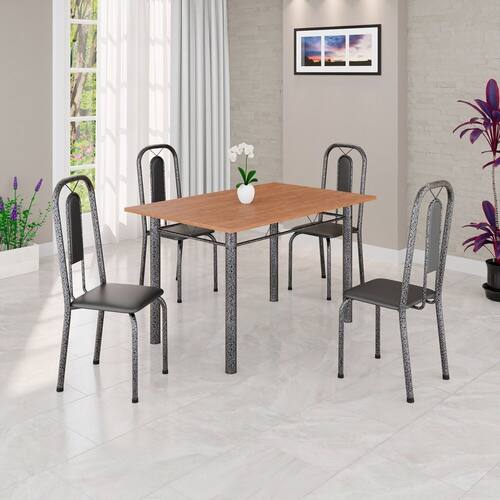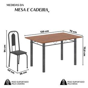 Quer deixar sua casa completa e prática? Uma dica bacana de como transformar o seu lar, deixando-o mais receptivo e bonito? Então você precisa de móveis indispensáveis para deixar seu lar muito mais aconchegante, receptivo e sempre disponível para receber a visita de amigos, familiares e convidados. Você vai se apaixonar por este incrível e moderno Conjunto de Mesa com 4 Cadeiras. Ideal para cozinha, ele é a melhor opção para completar o espaço que você desejar. Aproveite!! Medida da Mesa (A x L x P): 75,8 cm x 120 cm x 72 cm Peso da Mesa: 18,42 kg Mesa suporta até: 10.0000 Acabamento da Cadeira/Banco: Pintura Texturizada Acabamento da Mesa: Pintura Texturizada Ambiente Principal: Cozinha Cadeira/Banco Estofada: Encosto e Assento Estofados Cadeira/Banco estofada: Encosto e Assento Estofados Cadeira/Banco suporta até: 120.0000 codigo_ean: 7900288155627 Complexidade da Montagem: Baixa: pode ser montado por uma pessoa sozinha Cor: Preto / Prata Cor do Produto: Preto / Prata Cor Secundária: Cinza De Canto (Canto Alemão): Não Enchimento do Assento: Espuma D-16 Escala de Brilho: Semi-Brilho Espessura do Tampo: 1,5 mm Estrutura do Assento: MDP Formato do Tampo: Retangular Itens Inclusos: 1 Mesa, 4 Cadeiras, Kit Ferragens e Manual de Montagem Linha ou Coleção: Lívia Manual de Montagem e Instalação: https://product-hub-prd.madeiramadeira.com.br/411425686/documents/cb78fde9-22d0-48b2-a432-23193809904312743219352817418949403106.pdf Marca: Soma Móveis Material da Base da Mesa: Aço Material da Estrutura da Cadeira: Aço Material do Tampo: MDF Medida da Cadeira/Banco (A x L x P): 94 cm x 36 cm x 40 cm Medida do Tampo (L x C x E): 120cm x 72cm x 1,5 cm Mesa Extensível: Não Necessita Montagem: Sim Origem do Produto: Nacional Peso da Cadeira/Banco: 2,28 kg Possui Apoio Para os Pés: Não Quantidade de Cadeiras: 4 Quantidade de Lugares: 04 Recomendações de Uso, Manutenção e Limpeza: Não permitir que molhe os pés da base, usar um pano de tecido macio e seco, evitar detergentes, alvejantes e produtos químicos de limpeza; no tampo usar tecido macio levemente umedecido. Revestimento da Cadeira/Banco: Couro Ecológico Sistema de Montagem: Parafusos