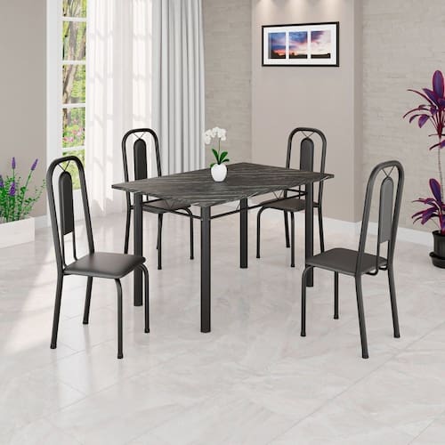 Conjunto Sala de Jantar com 4 Cadeiras Lívia Preto