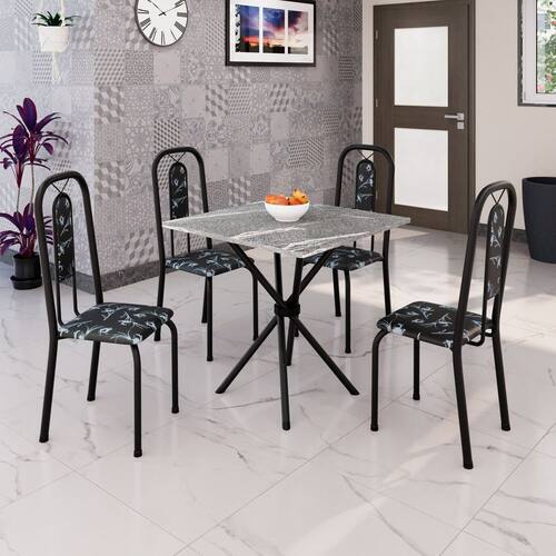 Conjunto Sala de Jantar com 4 Cadeiras Lívia Preto