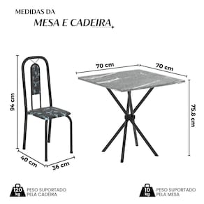 Medida da Mesa (A x L x P): 75,8 cm x 70 cm x 70 cm