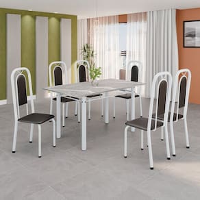Conjunto Sala de Jantar com 6 Cadeiras Lara Preto / Branco