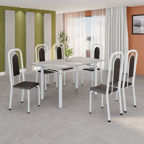 Quer deixar sua casa completa e prática? Uma dica bacana de como transformar o seu lar, deixando-o mais receptivo e bonito? Então você precisa de móveis indispensáveis para deixar seu lar muito mais aconchegante, receptivo e sempre disponível para receber a visita de amigos, familiares e convidados. Você vai se apaixonar por este incrível e moderno Conjunto de Mesa com 6 Cadeiras. Ideal para cozinha, ele é a melhor opção para completar o espaço que você desejar. Aproveite!!
