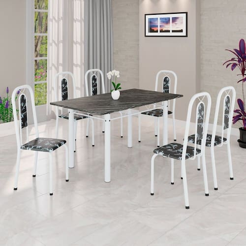 Conjunto Sala de Jantar com 6 Cadeiras Lívia Preto / Branco