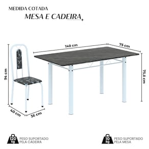 Medida da Mesa (A x L x P): 75,8 cm x 140 cm x 75 cm