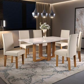 Mesas são indispensáveis para o funcionamento da casa e é no cômodo de confraternização que elas ganham protagonismo. Composto por peças de muito charme, o Conjunto Bilion e Venus torna o uso desse móvel importante com 6 cadeiras para garantir uma usabilidade plena para o seu dia a dia Medida da Mesa (A x L x P): A:80cm x L:160cm x P:90cm Peso da Mesa: 50,9 kg Mesa suporta até: 50.0000 Acabamento da Cadeira/Banco: Pintura UV Acabamento da Mesa: Pintura UV Ambiente Principal: Sala de Estar Cadeira/Banco estofada: Encosto e Assento Estofados Cadeira/Banco Estofada: Encosto e Assento Estofados Cadeira/Banco suporta até: 90.0000 codigo_ean: 7908308785366 Complexidade da Montagem: Média: pode ser montado por mais de uma pessoa e/ou necessite de maior conhecimento para montagem Cor: Mel/Bege/Off White Cor da Base: Marrom Cor do Tampo: Bege Cor Secundária: Bege De Canto (Canto Alemão): Não Enchimento do Assento: Espuma D-20 Enchimento do Encosto: Espuma D-12 Espessura do Tampo: 40 mm Estrutura do Assento: MDP/Espuma Estrutura do Encosto: MDP/Espuma Formato do Tampo: Retangular Informações Complementares: Sala de Jantar 6 lugares Manual de Especificação Técnica: https://product-hub-prd.madeiramadeira.com.br/840162/documents/3ec02289-d950-4473-8f11-b18e4160592besapaladiumcomcadeiravenus.pdf Manual de Montagem e Instalação: https://product-hub-prd.madeiramadeira.com.br/840162/documents/2915e296-8036-4f6c-9000-218a133c5f5fesapaladiumcomcadeiravenus.pdf Manutenção: Limpar com pano levemente umedecido com água Material da Base da Mesa: MDP Material da Estrutura da Cadeira: MDF/MDP Material do Tampo: Vidro/MDF Medida da Cadeira/Banco (A x L x P): 98,5cmx42cmx48cm Medida do Tampo (L x C x E): 160cmx90cmx4cm Mesa Extensível: Não Necessita Montagem: Sim Origem do Produto: Nacional Peso da Cadeira/Banco: 7,1 kg Quantidade de Lugares: 06 Recomendações de Uso, Manutenção e Limpeza: Limpar com pano levemente umedecido com água Revestimento da Cadeira/Banco: Veludo Vidro Temperado: Sim Ean: 7908308785366