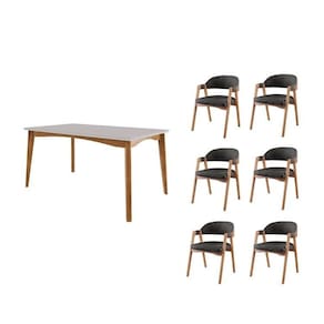 Conjunto Sala de Jantar com Tampo de Vidro Monalisa 6 Cadeiras Gaia Mel Natural/Off White/Preto - Bege
