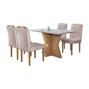 Caracteristicas: Informações Técnicas Mesa Material da Estrutura: Compensado de 4mm, em lâmina de Madeira Natural. Tampo Mesa: Borda Encabeçada MDF 25mm. Vidro Mesa: Vidro laqueado de 3mm. Necessita Montagem: Sim, necessário montador. Embalagem Tampo: Perfil tubex, papelão e plástico bolha. Embalagem Base: Papelão e plástico bolha. A base é enviada separadamente, facilitando o transporte até o local desejado.