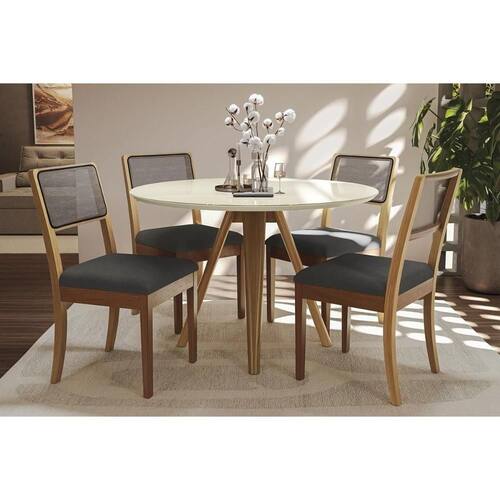 Abaixo segue os produtos do KIT: Sala de Jantar Completa Duna Premium Madeira Maciça c/ Tampo Madeirado c/ Vidro 120x120cm e 4 Cadeiras Lola Carvalho/Off White - Boucle Grafite - Kappesberg