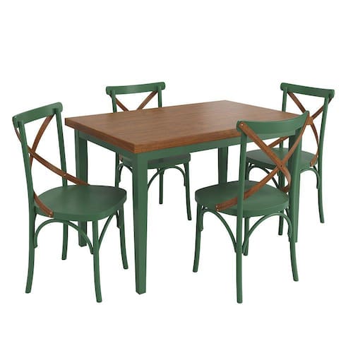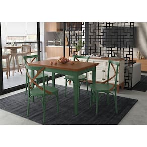 Conjunto Sala de Jantar e Cozinha Com 4 Cadeiras X Madeira Maciça Verde -