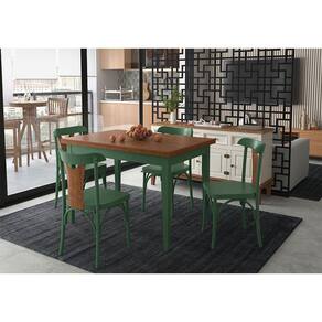 Conjunto Sala de Jantar e Cozinha Com 4 Cadeiras Y Madeira Maciça Verde -