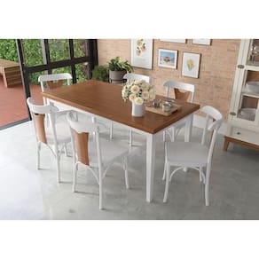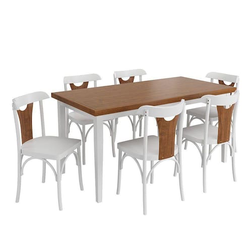 Conjunto Sala de Jantar e Cozinha Com 6 Cadeiras Y Madeira Maciça Branco -