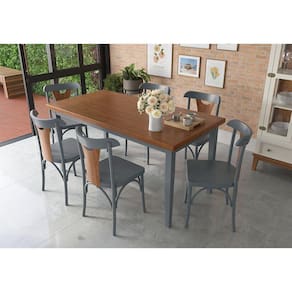 Conjunto Sala de Jantar e Cozinha Com 6 Cadeiras Y Madeira Maciça Cinza -
